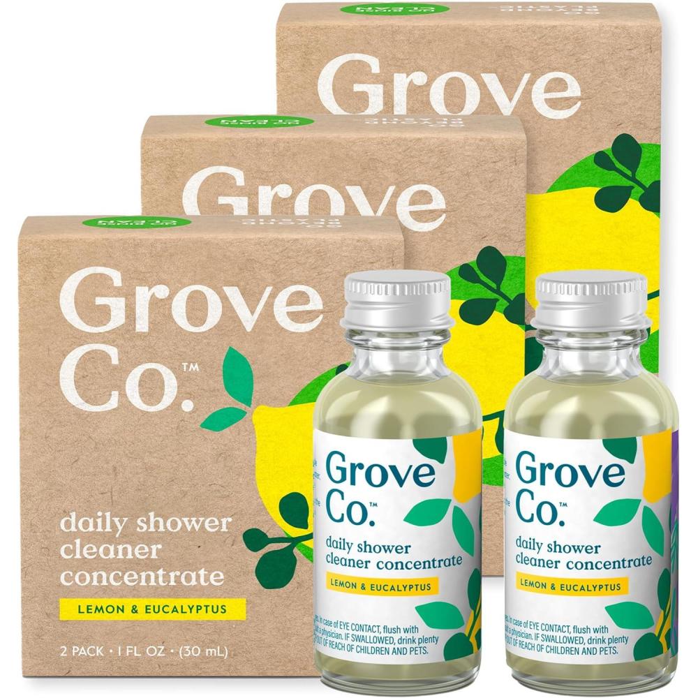 Grove Co. Daily Shower Cleaner, Refill Concentrate (2 x 1 Fl Oz) + 1 x Reusable Glass Spray Bottle (16 Oz), Plant-Based Cleaning Supplies, Reduced Plastic, Lavender Blossom & Thyme Fragrance(Lemon & Eucalyptus)